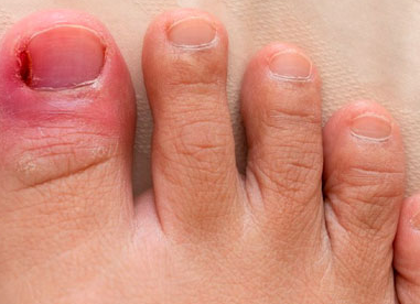 신발이 너무 낮거나 꽉 조이는 신발을 오래 신다보면 엄지발가락에 압력이 가해지고 발톱이 휘게 되어 안쪽으로 파고드는 현상이 생깁니다.